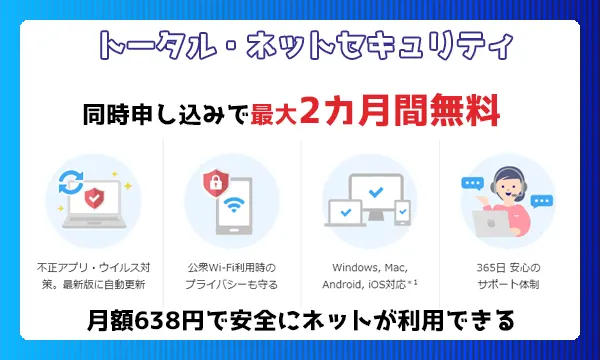 | 戸建て/マンション | 派遣工事有り | 28,600円(550円/月×36回) | 月額基本料金550円×36ヵ月間割引(合計28,600円割引) |