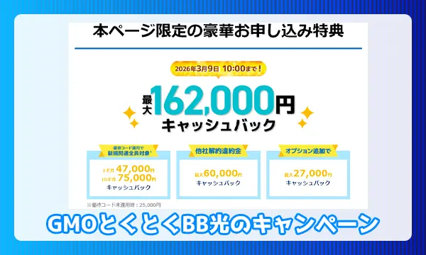 2026年3月GMOとくとくBB光のキャンペーン詳細