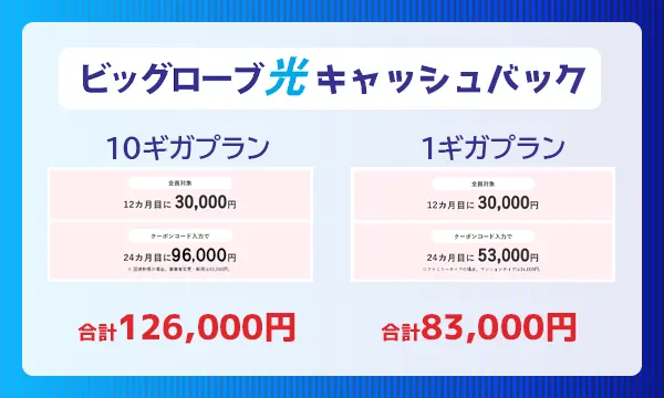 | ビッグローブ光 | 最大83,000円 | 最大126,000円 |